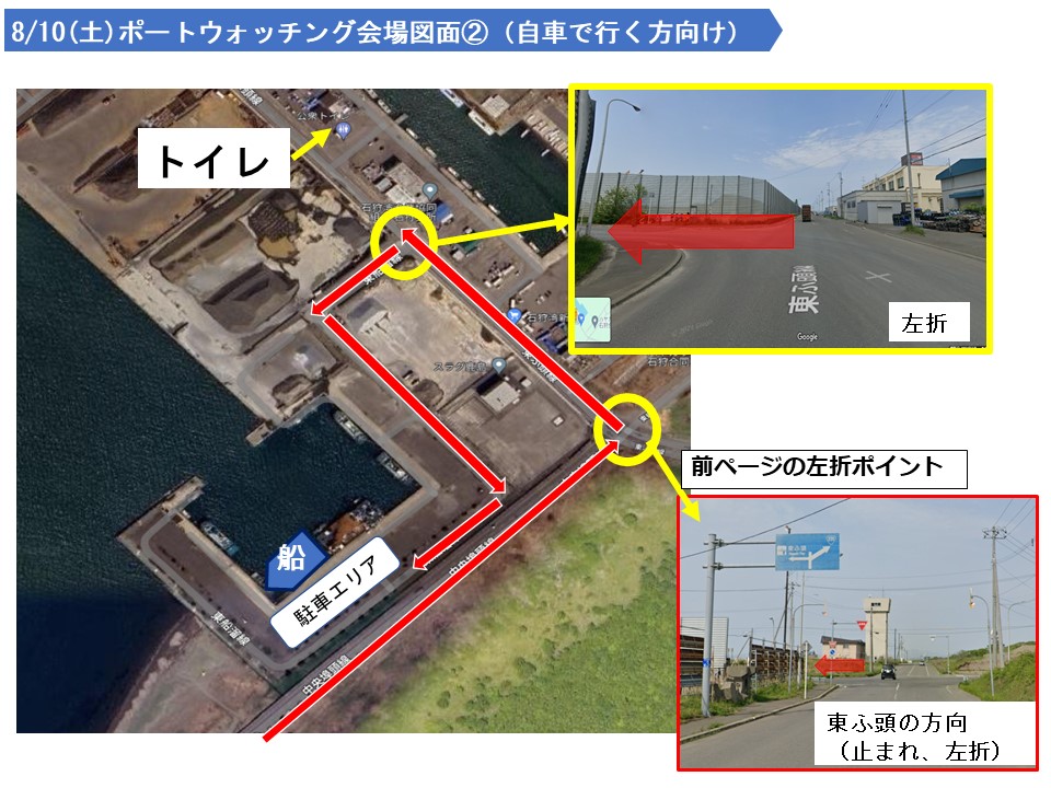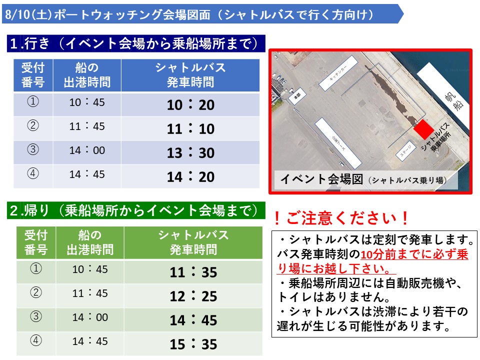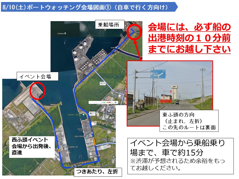 トピックス HOME トピックス ポートウォッチング情報(8/10(土))東ふ頭乗船場所までの情報 2024.07.31 ポートウォッチング情報(8/10(土))東ふ頭乗船場所までの情報 西ふ頭イベント会場から、乗船場所までの経路図は以下のとおりです。 ①車で行く方向け ②シャトルバスで行く方 港の紹介 遊泳・潜水行為の禁止について 立入制限、海浜地利用、放置等禁止区域 5つの地区 港湾施設・動植物検疫 港の背後地域 自然条件 沿革 振興団体 要覧・広報誌等 ビジネス向け情報 定期コンテナ航路 交通ネットワーク ポートサービス 各種料金 入出港予定 海貨業者・官公署等 申請様式ダウンロード 港湾施設の使用申請について 「石狩湾新港入港のしおり」について 船舶の安全運航確保のための合意事項 港の計画・港湾統計 港の将来計画 臨港地区及び分区 港湾統計 石狩湾新港管理組合について 組織概要 港湾管理者挨拶 石狩湾新港地方港湾審議会 議会 財政 ニュースリリース 港湾BCP 入札工事情報 入札情報 入札制度 工事(委託)情報 入札結果